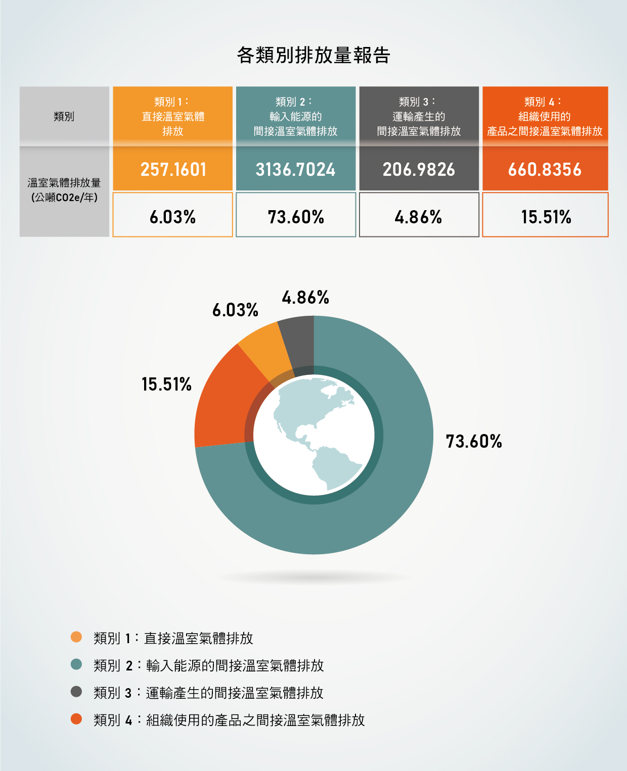 圖一:各類別溫室氣體排放量之CO2當量比例