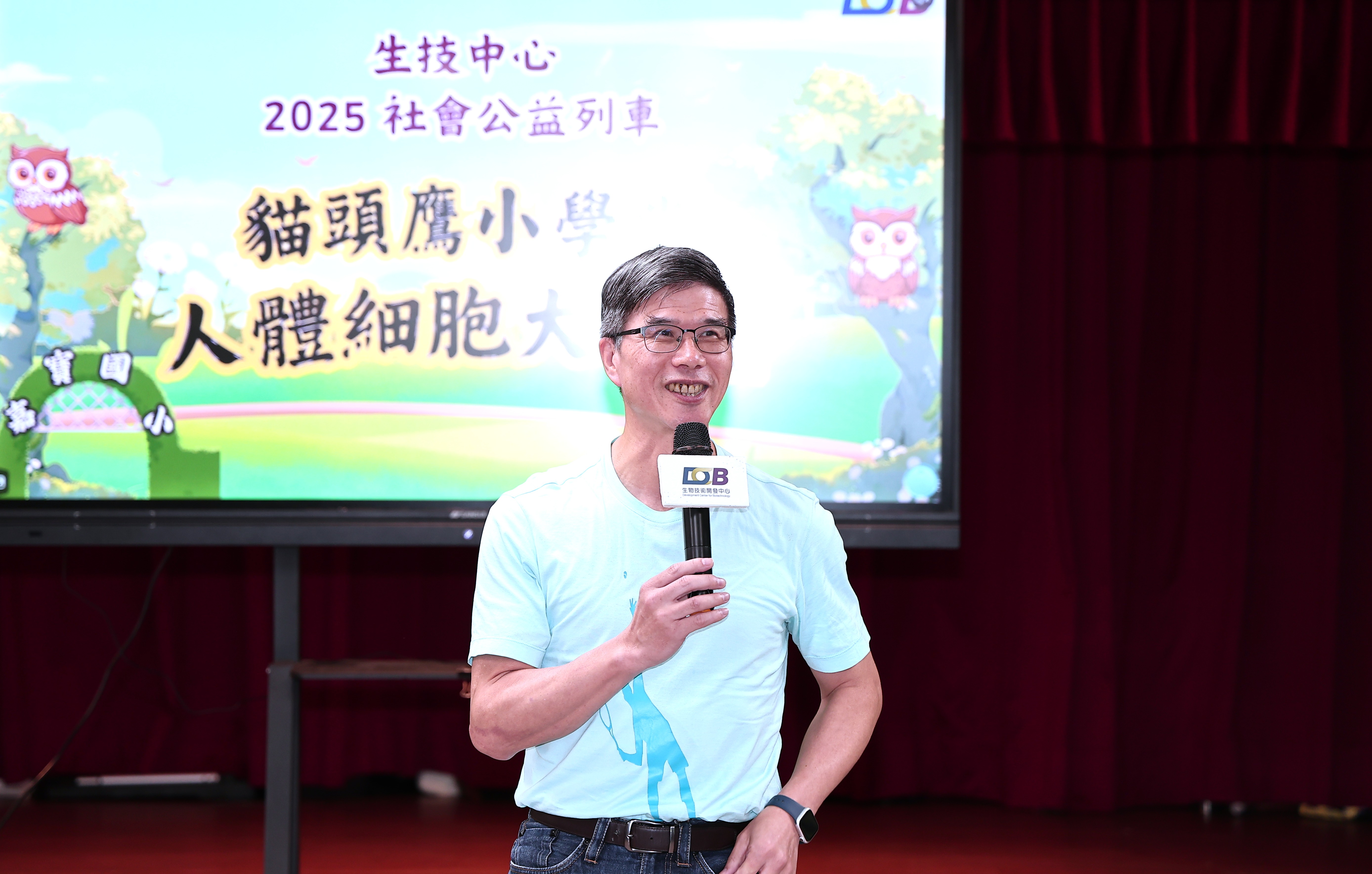 生技中心李財坤執行長表示,科普教育不僅是傳授知識,更是培養孩子探索世界的能力。透過親自走進校園,我們希望讓孩子看見科學的樂趣,也讓他們知道,未來每一個人都有機會成為改變世界的科學家。