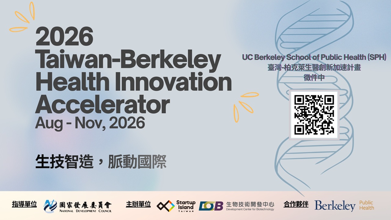 - 計畫名稱:臺灣-柏克萊生醫創新加速計畫 2026 Taiwan-Berkeley Health Innovation Accelerator ─ Berkeley Public Health Program