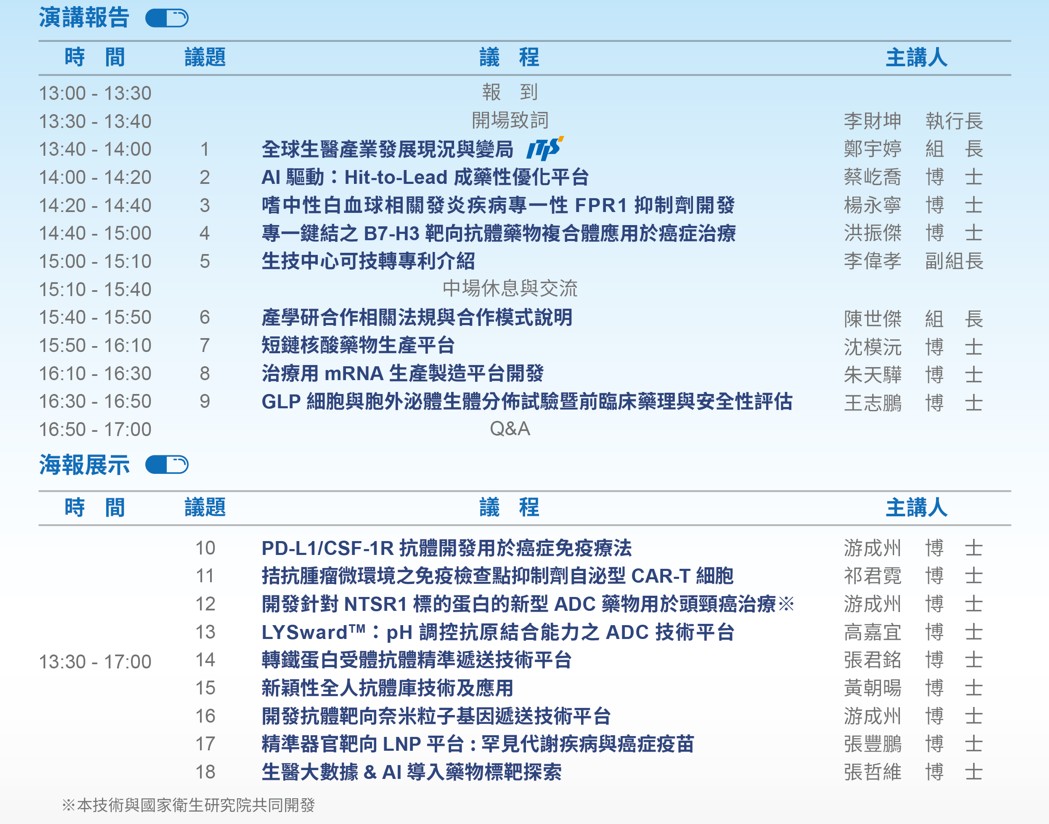 地點│國家生技研究園區C棟212會議室(台北市南港區研究院路一段130巷99號C棟2樓)